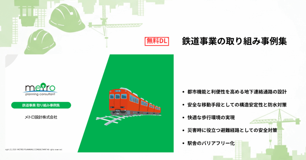 メトロ設計株式会社では、地下空間や駅接続動線の設計を中心に、計画段階から実施設計まで一貫した支援を行っています。