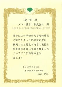 東京都水道局様より、優良業務の表彰状を頂きました。