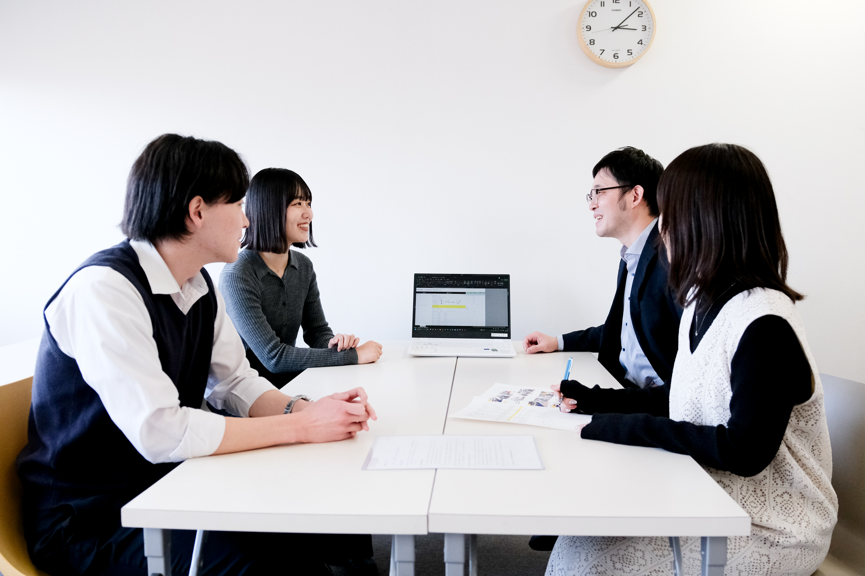 コアタイムを10時~15時としたフレックスタイム制度を、全社員を対象に実施しています。それぞれの社員が自分の家庭環境や通勤環境に合わせ、働きやすい時間帯を選んで働いています。